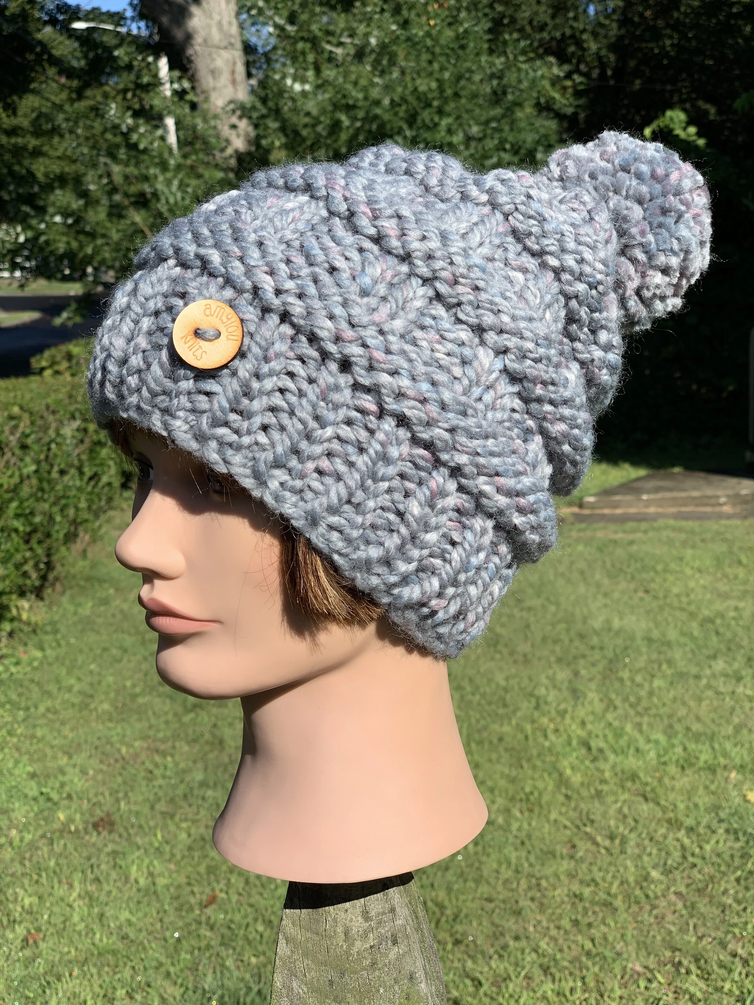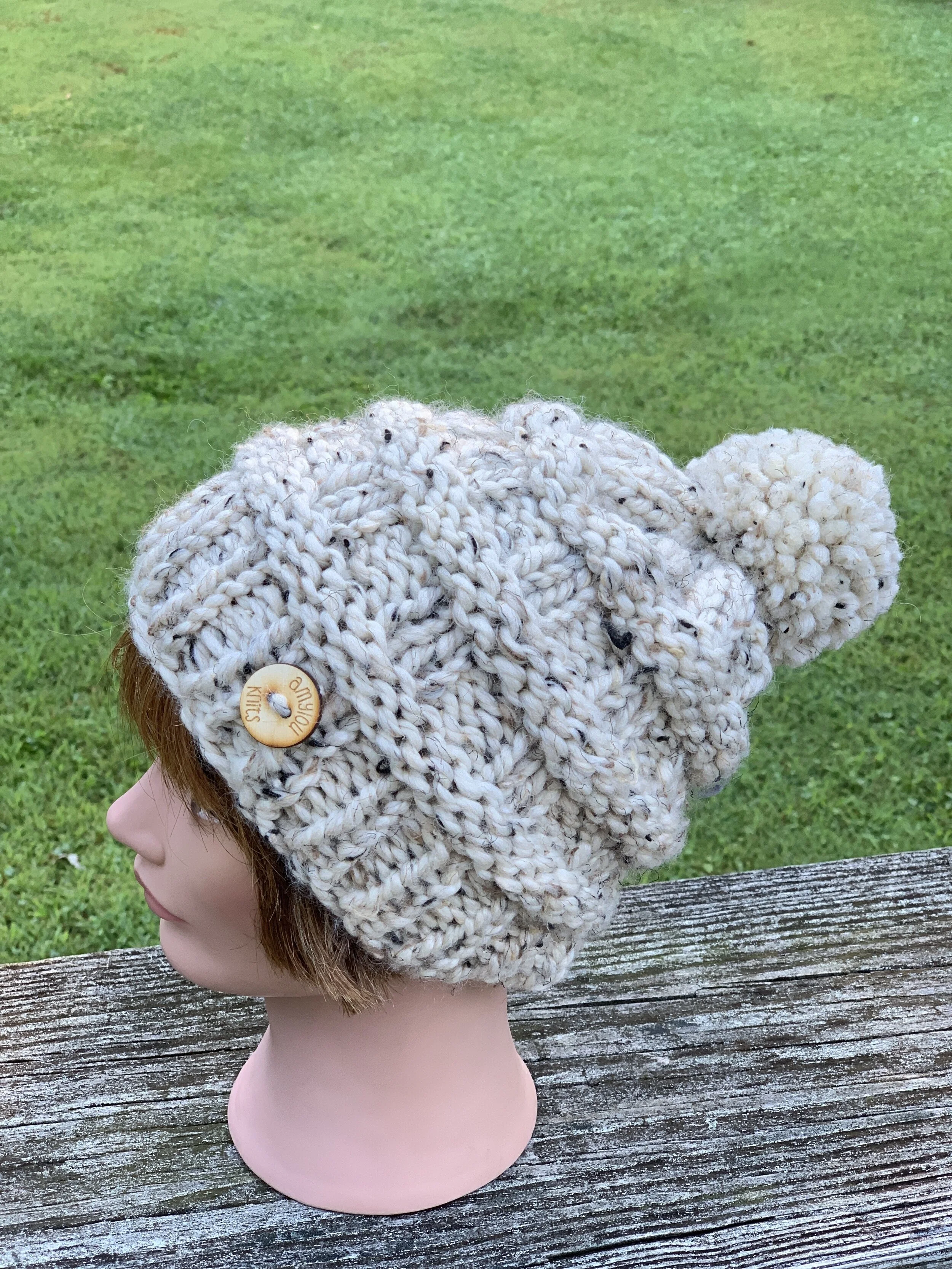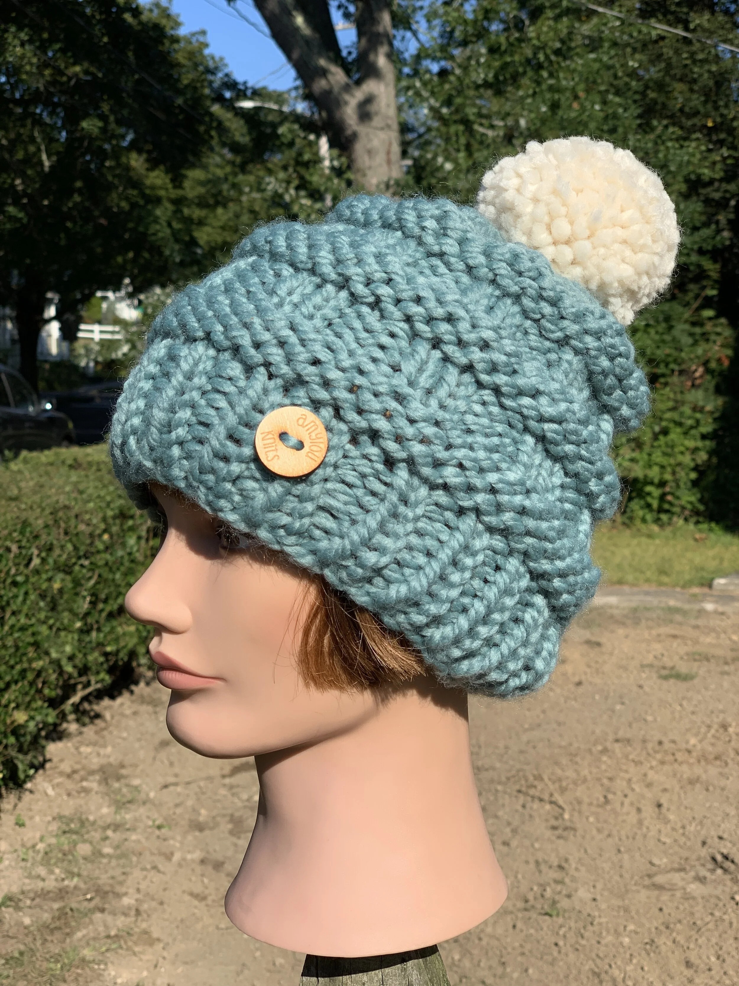 The Scotia Beanie is hand-knit with a wool-blend yarn - 80% acrylic / 20% wool. It is just the right blend for warmth, and coziness. If this is the design you are interested in, please contact me with your color choice and I will custom knit this with-in 3-5 days. All beanies come with a winter white yarn pom pom unless otherwise instructed.
