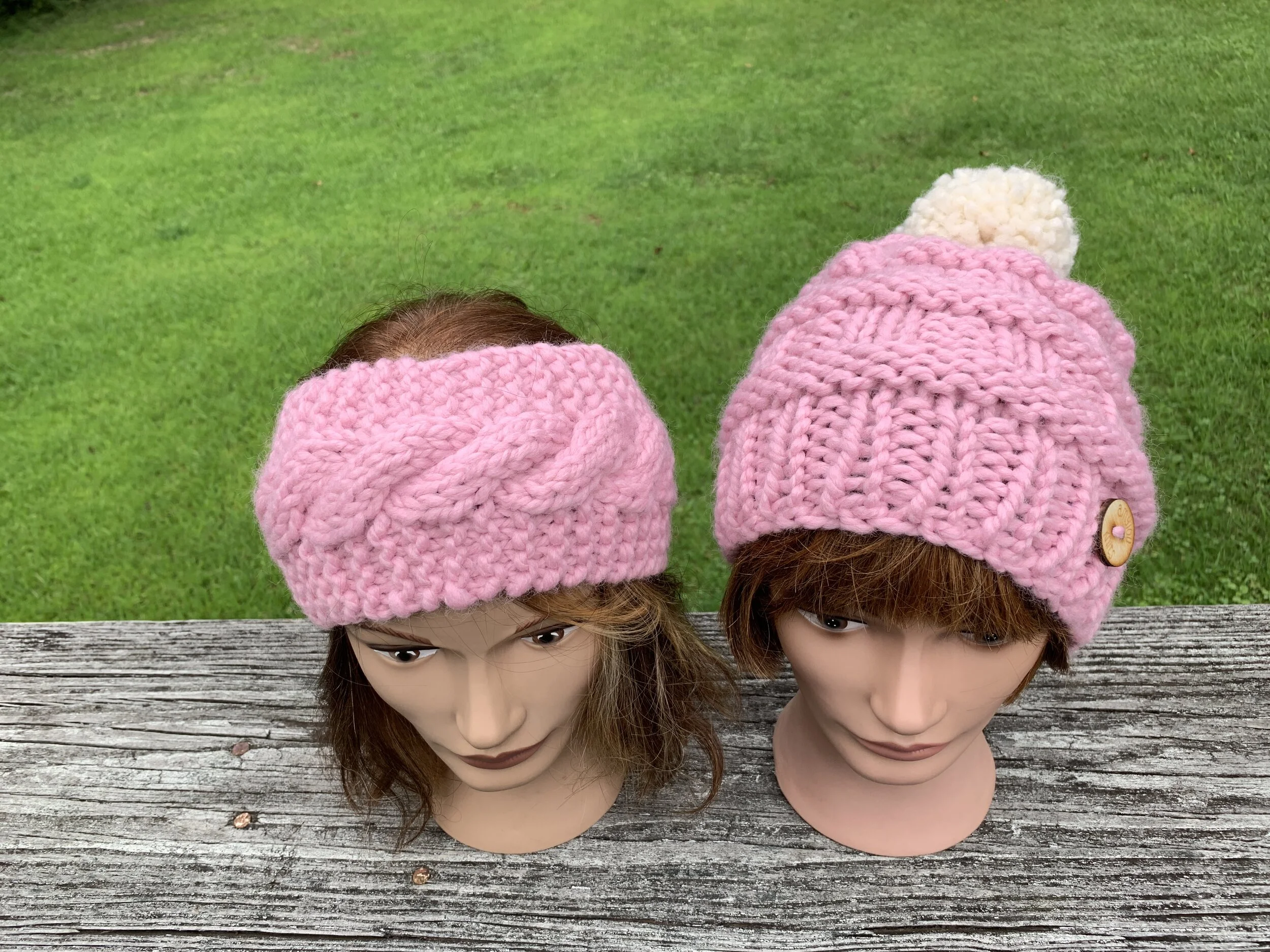 The Cable Headband is hand-knit with a wool-blend yarn - 80% acrylic / 20% wool. It is just the right blend for warmth, and coziness. If this is the design you are interested in, please contact me with your color choice and I will custom knit this with-in 3-5 days.